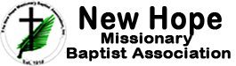 The New Hope Missionary Baptist Association, Inc. is "An Association of Churches Working Together to Ignite Missionary Thinking and Actions" Matthew 28:19-20. Its mission is to spread the gospel of our Lord and Savior Jesus Christ and strengthen and support its member churches.